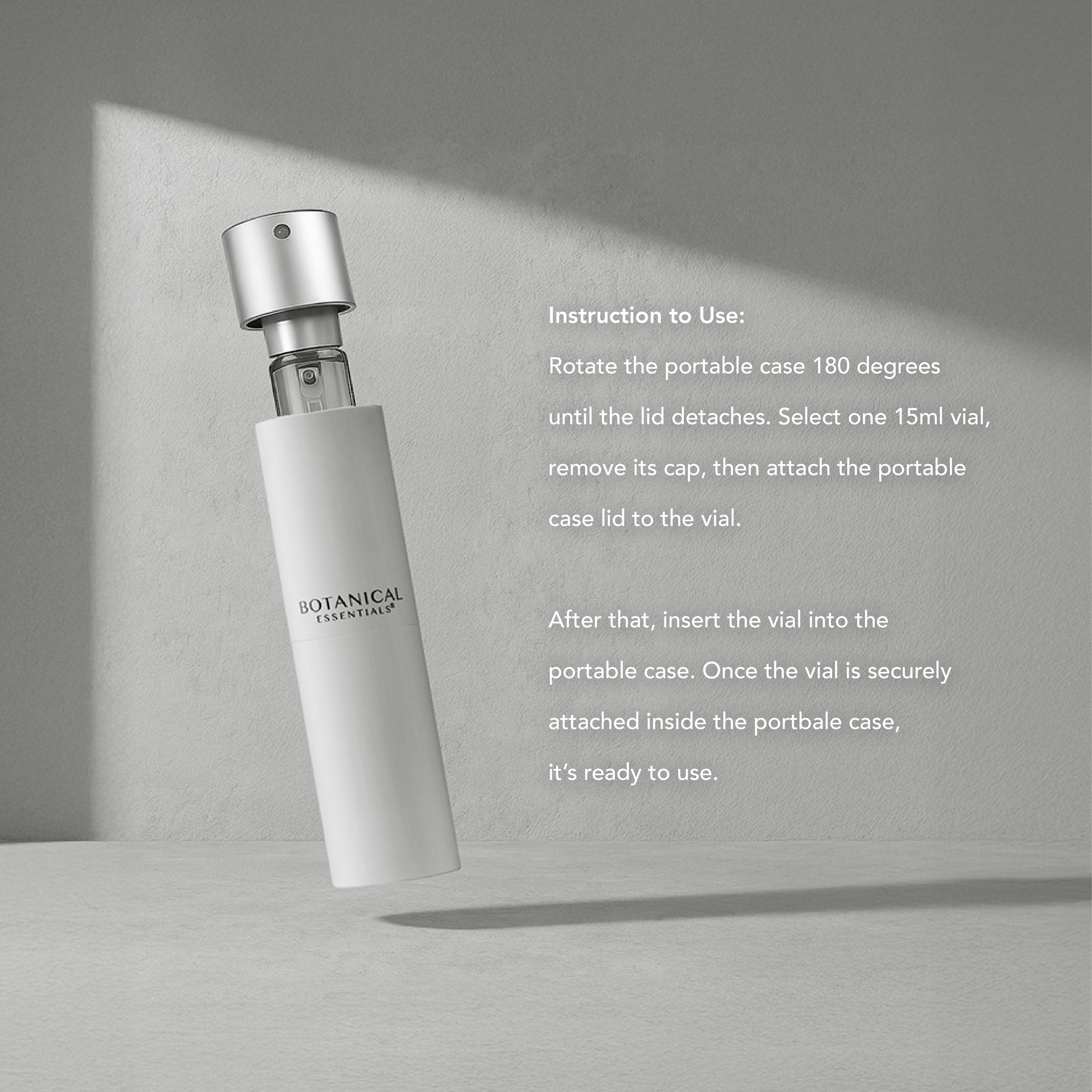 IMPORTANT NOTE: TRAVEL SIZE 15ml CAN ONLY BE USED WITH THE PORTABLE CASE.