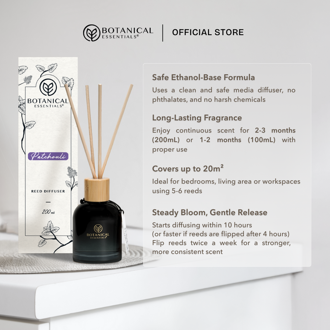 Recommended reed usage is 5-6 sticks per 100ml. Turn over the reeds once a week to intensify the fragrance. For maximum fragrant, display at room temperature. Up to 3-month usage.